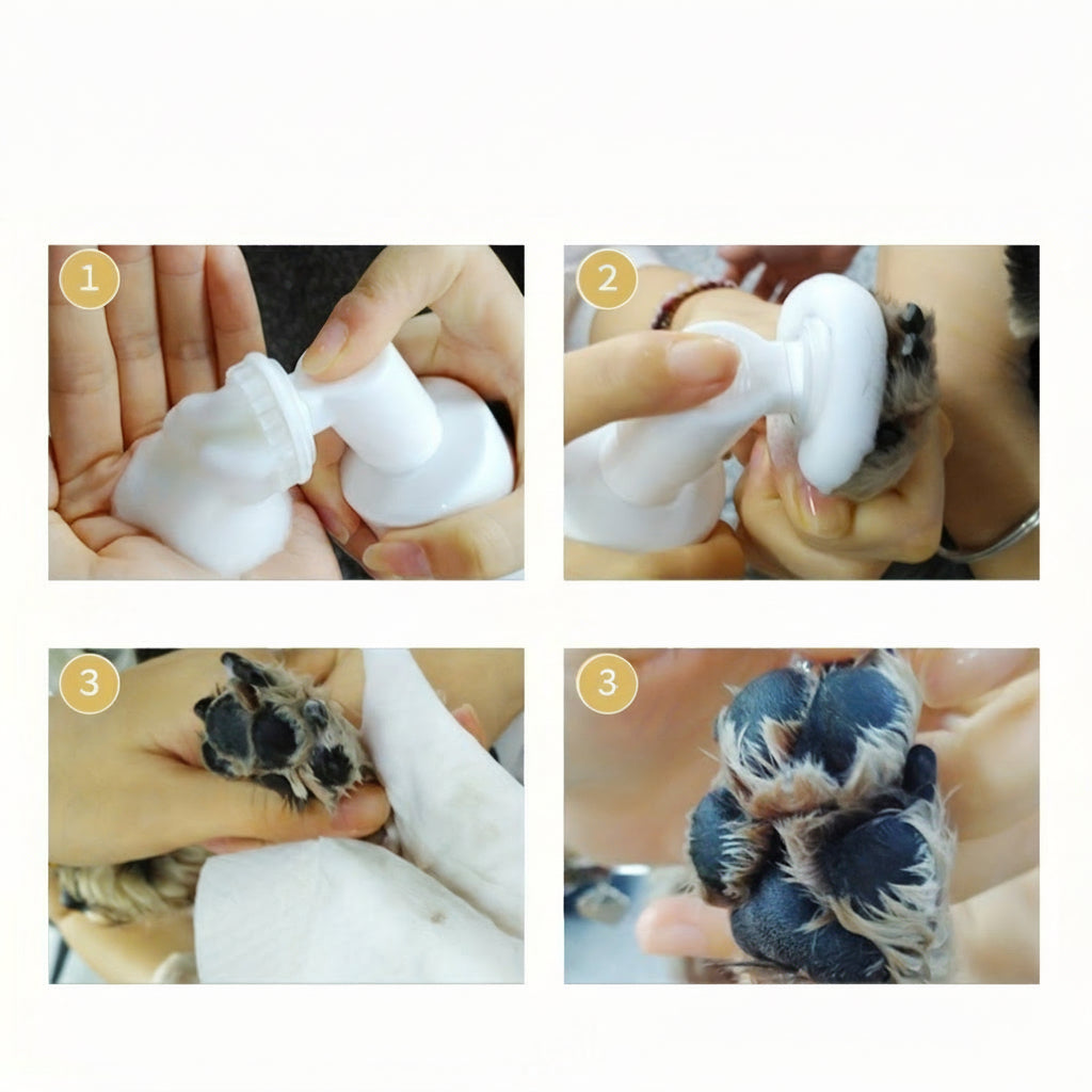 Onze pootreiniger combineert een milde reinigingslotion met een 360° zachte siliconen borstel, zodat je zonder gedoe vuil, modder en bacteriën verwijdert. Dankzij het ergonomische ontwerp kun je snel, veilig en pijnloos de pootjes van je huisdier schoonmaken – waar je ook bent.